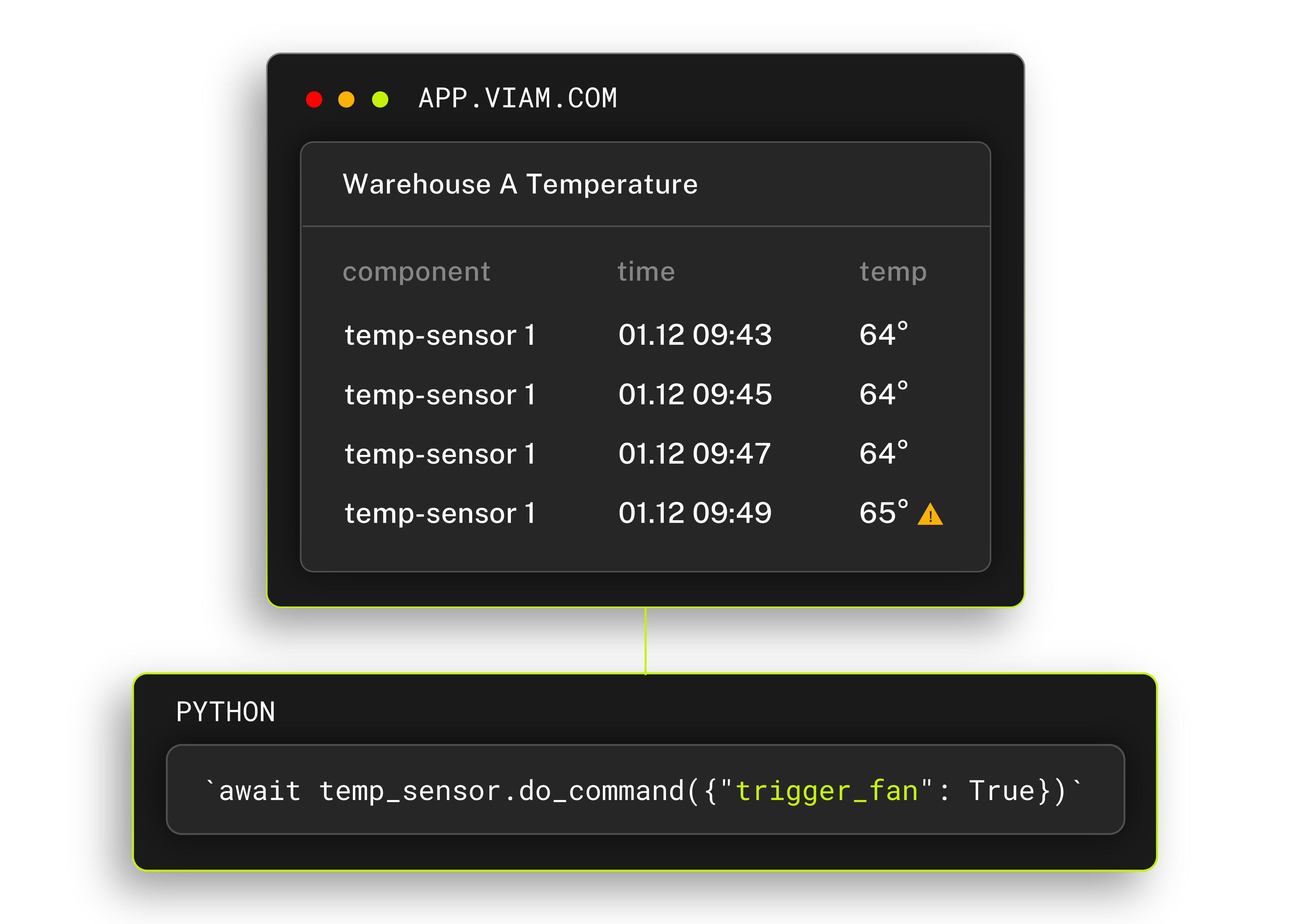 When a device goes down, you shouldn't find out from a phone call. With Viam, get real-time visibility across every device with status, logs, and diagnostics, without sending anyone onsite.