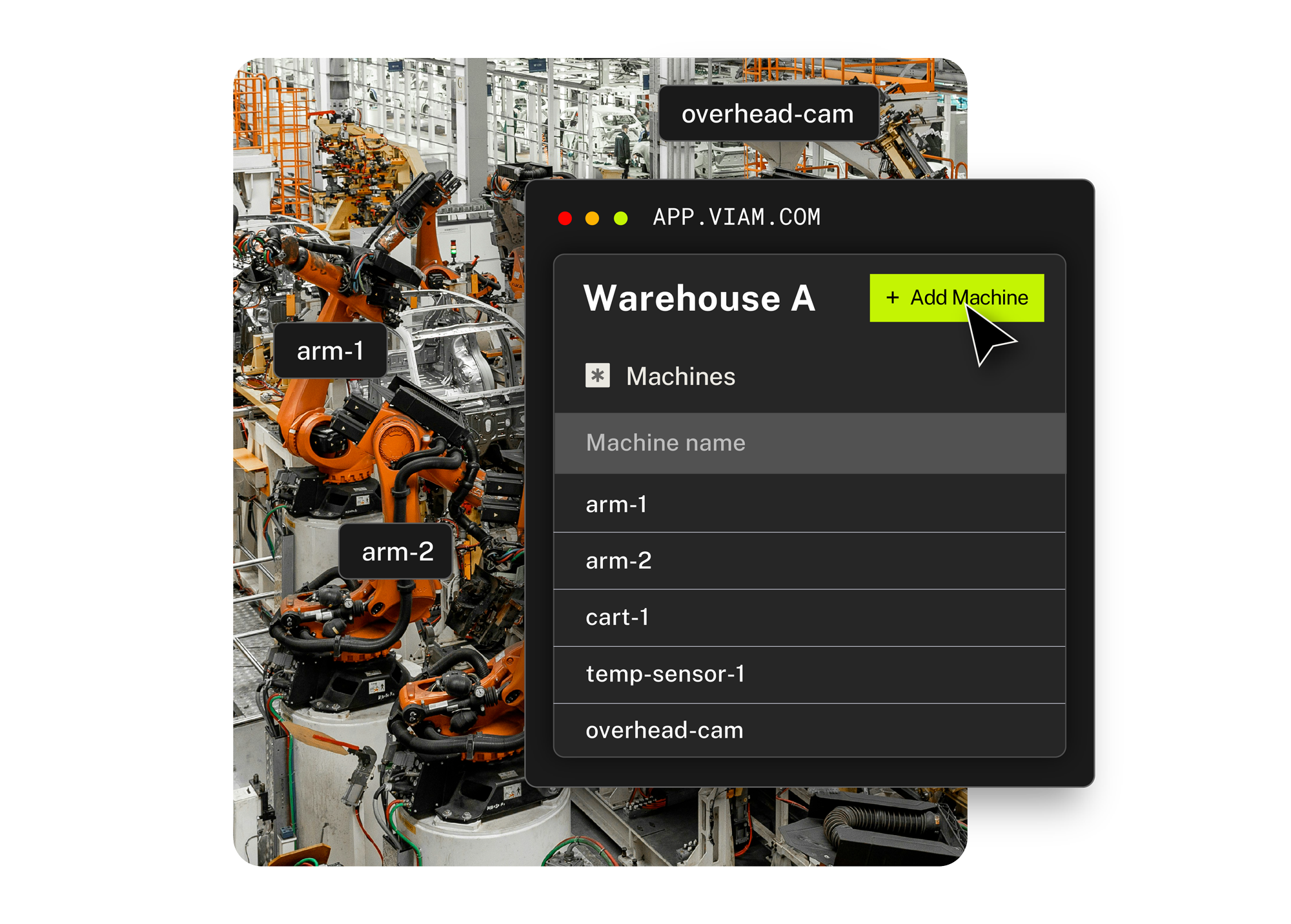 Most machine fleets generate sensor data that goes nowhere. Viam runs AI models directly on your hardware — local inference, no connectivity required — and keeps them improving over time.